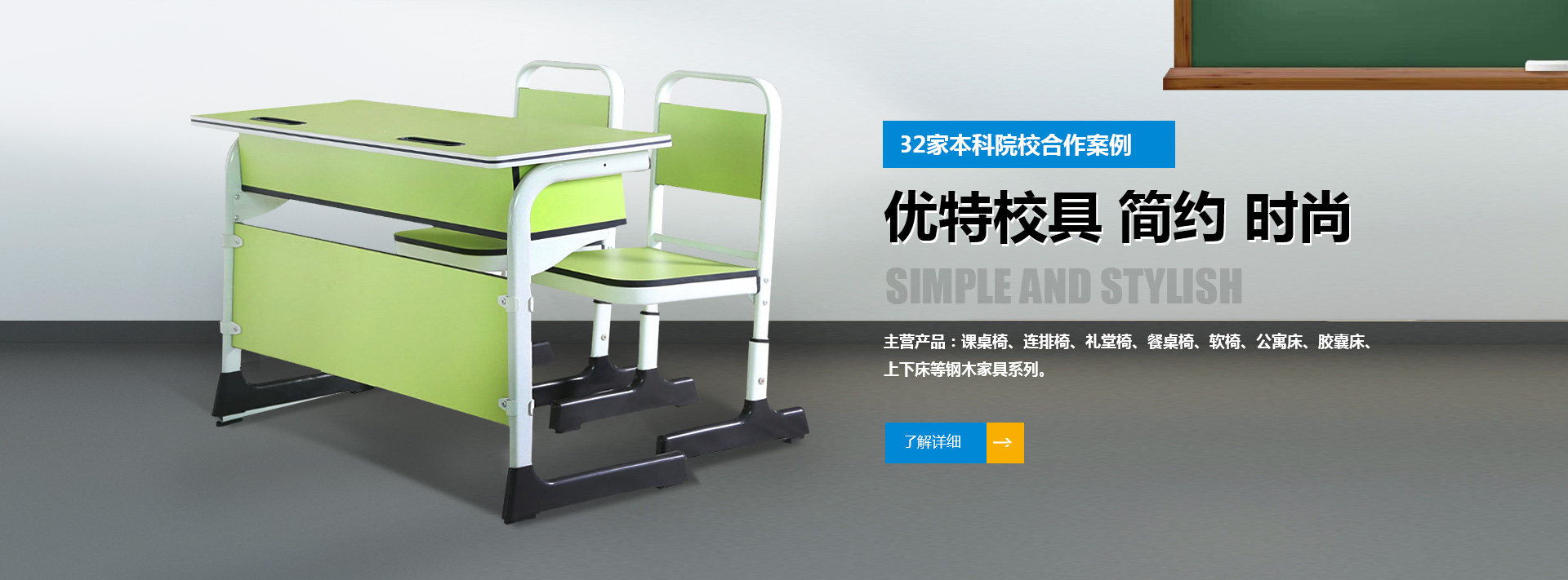我公司位于河南省偃師市首陽山鎮石橋村北環工業區,是集研發、制造、銷售、服務為一體的綜合性學生課桌椅廠家,產品主要有課桌椅、連排椅、禮堂椅、餐桌椅、軟椅、公寓床、膠囊床、上下床等鋼木家具系列??筛鶕蛻粜枨筇峁┒ㄖ苹桨浮?/p>